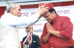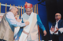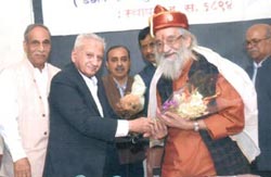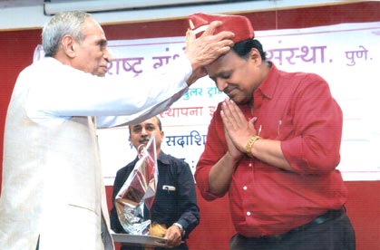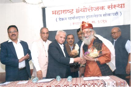 सन २०१७ चा वर्धापनदिन सोहळाः समारंभाचे अध्यक्ष माजी सनदी अधिकारी श्री. अविनाश धर्माधिकारी यांना पगडी प्रदान करताना संस्थेचे अध्यक्ष डॉ. गो. बं. देगलुरकर |