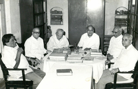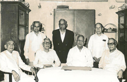 (डावीकडून) न्या. वि. गो. ओक, डॉ. ग. ह. चारळेकर, न्या. य. वि. चंद्रचूड, श्री. प. मराठे, (मागे) डॉ. प्र. ल. गावडे, श्री. ना. चाफेकर, ग. म. गाडगीळ |